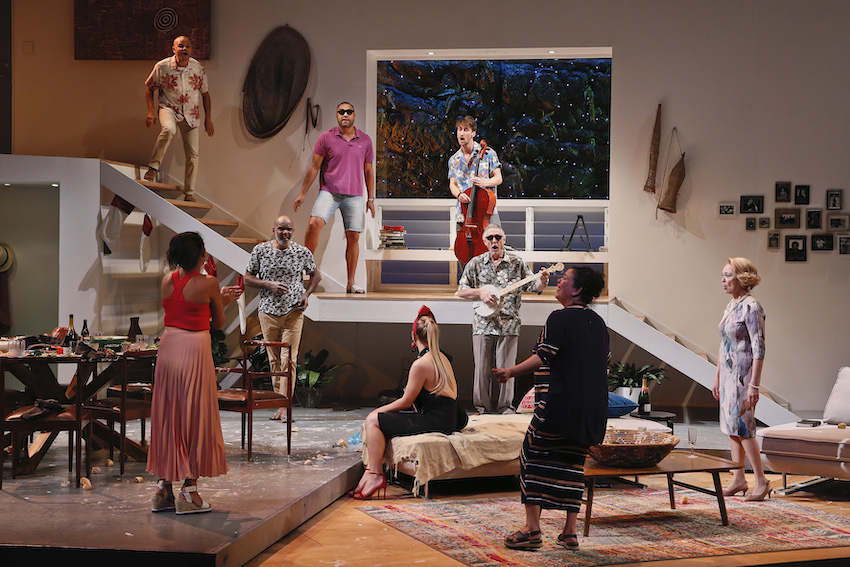 Laughing at the absurdity of it all, against the backdrop of the relationship dynamics, there is a balanced innocence and wisdom shared between high-profile Aboriginal lawyer Charlotte (Tapsell) and her musically brilliant trust-funded Anglo fiancé Francis (the endearing Tom Stokes). This is juxtaposed by the ignorant ‘boomer’ mentality shared between their respective fathers Ray (Tony Briggs) and Denison (Geoff Morrell). Their wives Joan (Melodie Reynolds-Diarra) and Marie (Vanessa Downing) share more than a mutual respect and tacit appreciation of gender-specific subjugation, while Charlotte’s sister and brother-in-law (Tuuli Narkle and Anthony Taufa) grapple with how their wealth and public profile lends itself to a narrative of indigenous identity that may not, in fact, be their personal truth.