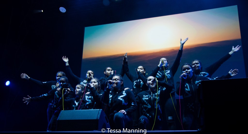 In collaboration with Cat Empire’s Felix Riebl and Ollie McGill, Marliya from Gondwana Choirs have created Spinifex Gum. Singing about life in Western Australia’s Pilbara, the choir of young Aboriginal women promote powerful messages about equality, friendship, racism, injustice and stories of the people of the region. With striking choreography, beautiful voices, powerful images projected onto a screen behind the choir, and guest appearances by Felix and Briggs, Spinifex Gum is an awe-inspiring musical and theatrical performance in its own right. But it’s the lyrics and the stories, and the way the young singers lift up their voices, share their experiences, bare their souls, and ask us to join with them that makes this group unique to other acts we’ve seen at this festival. It is simply breathtaking. If you missed them, go and see them perform as soon as you can. Buy their album, listen to what they’re telling you, and add your voice to theirs as they protest the injustices served to their community and many other communities in our country.