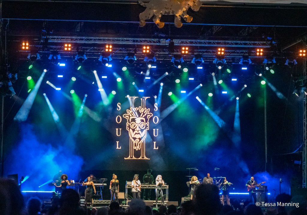 Soul II Soul delivered one of the most enjoyable sets of the festival at 7pm on the main stage. Led by the charismatic Jazzie B on the turntables – whose sermon-like interludes exuded joy, with occasional nostalagia, the outfit is backed by an outstanding ensemble who traverse a range of musical styles. The 1989 hit ‘Back to Life’ at the set was a great moment that had us all moving and singing along.