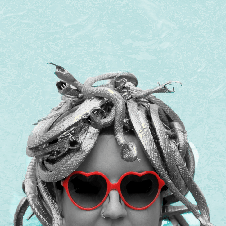The references to the classic tale of Medusa and her unfortunate encounters with Poseidon, who put the curse upon her and Perseus, who vanquished her, are clever and bring insight to the light humour.
