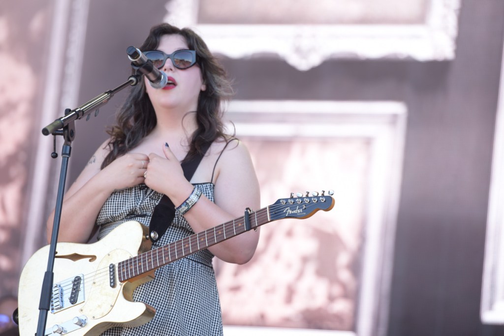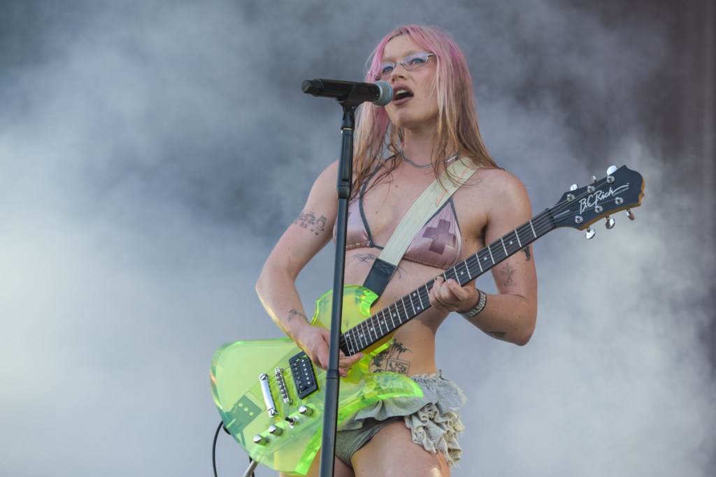 Lucy Dacus, known also for her work in boygenius, delivered one of the most emotionally resonant sets of the day. Her calm stage presence was grounding, even in the heat. At one point, she admitted she felt ‘half out of her body,’ yet her vocals never faltered. Her connection with the crowd was powerful, particularly during chants of “Free Palestine,” which were met with overwhelming support. Her band was another standout, especially the violinist, whose contributions added rich texture to an already layered performance. She delivered a stunning rendition of boygenius’ ‘True Blue’ before closing with ‘Night Shift’, which fans joined in with the belting (albeit not quite to the same level of talent).