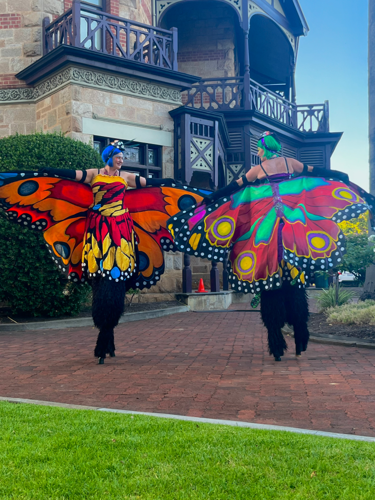 The comparison to that particular festival felt accurate; particularly with picnic rugs, cushions and chairs scattered around the main stage area. Dream catchers, crystals, tea parties and three metre tall butterfly dancers complemented the aesthetic well. Behind the main stage were a group of market stalls selling vintage clothes and gemstones, as well as the ‘Heart Hub’, which was described by Dr Adamek as being able to convert heart rates to light and sound. Unfortunately, the ‘Heart Hub’ had technical issues and was not functioning on the night we were there but it will be a wonderful addition to the event when it’s up and running.