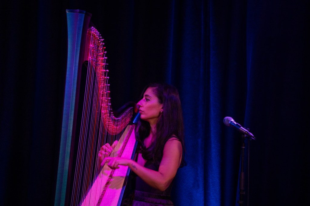 Performing on an electro-acoustic pedal harp enhanced with analogue effects, Perillo reveals just how versatile the instrument can be. Moving effortlessly between whimsical folk, ambient textures and re-imagined pop, the show flows with a sense of calm that feels almost meditative. One moment you’re drifting through delicate string arrangements; the next you’re hearing echoes of 90s R&B, with a surprising and beautiful nod to Toni Braxton woven through the harp’s resonant tones.